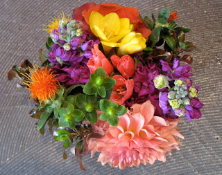 We're so excited about all the great fall folliage! Maple, oak, rosehips, berries, amazing grasses and big, bold flowers have arrived. Before all the trees in town have lost their glory, bring some color into your home. Try a bold statement or a sweet subtle one like the arrangement shown above.